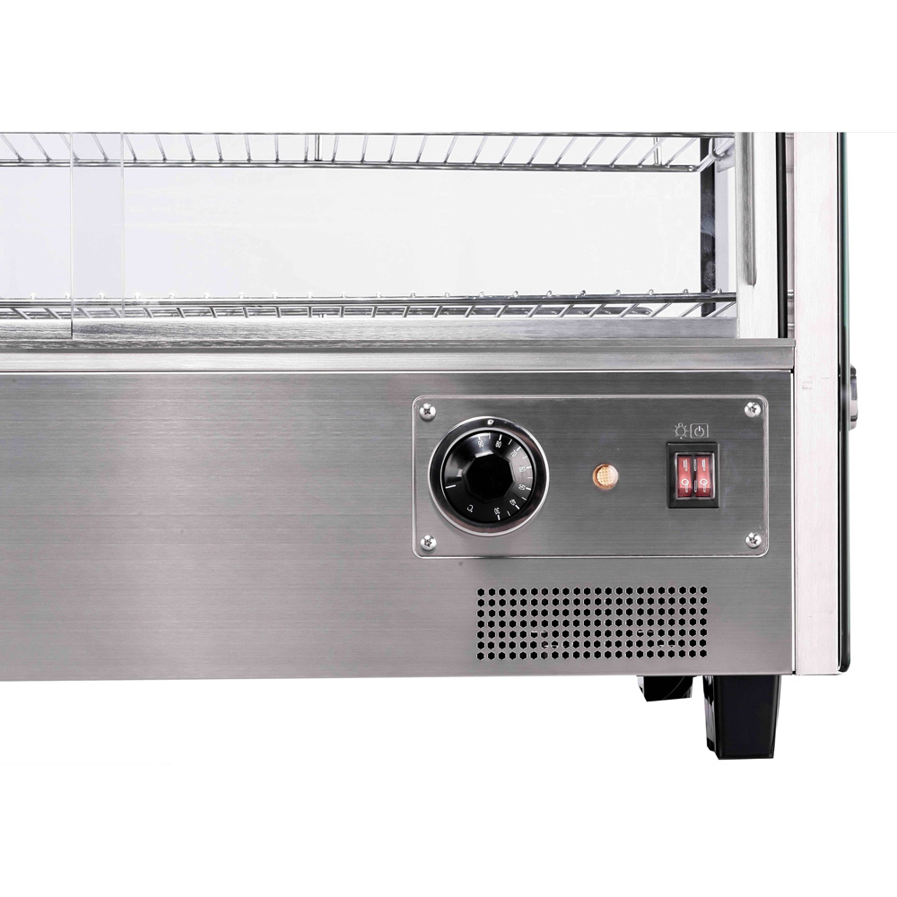 Η επιτραπέζια θερμαινόμενη βιτρίνα είναι η ιδανική λύση για τη ζεστή και ελκυστική παρουσίαση των προϊόντων σας, όπως σφολιατοειδή, πίτες, σνακ και άλλα εδέσματα. Ο εργονομικός της σχεδιασμός εξασφαλίζει μέγιστη πρακτικότητα και άνεση στη χρήση.