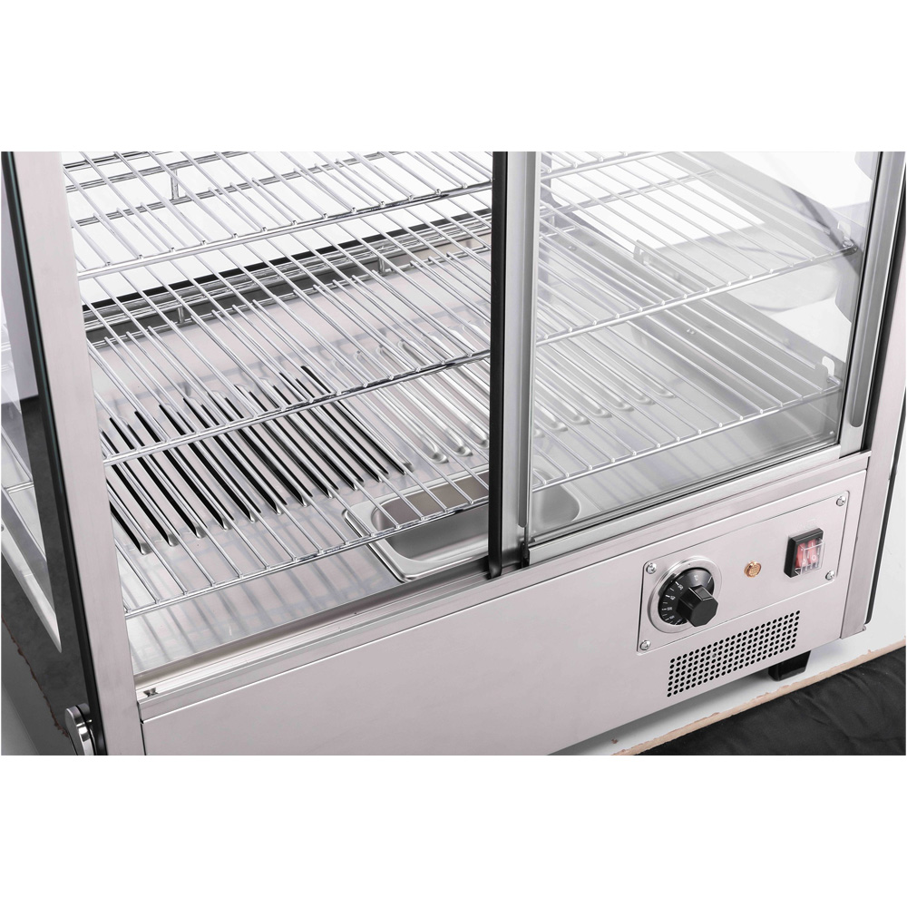 Η επιτραπέζια θερμαινόμενη βιτρίνα είναι η ιδανική λύση για τη ζεστή και ελκυστική παρουσίαση των προϊόντων σας, όπως σφολιατοειδή, πίτες, σνακ και άλλα εδέσματα. Ο εργονομικός της σχεδιασμός εξασφαλίζει μέγιστη πρακτικότητα και άνεση στη χρήση.